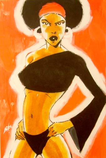 London's Muzik magazine has called ALAN D. OLDHAM "Detroit Techno's Renaissance Man," having made his name throughout the '90s as the owner of the Generator, Pure Sonik, and xfive labels, international techno DJ (under the stage name DJ T-1000), and electronic musician. During that time, however, Oldham was also an accomplished illustrator, responsible for the graphic direction of the Netherlands-based Djax-Up-Beats record label, as well as logos, label art and album covers for such electronic music labels as Transmat, KMS, Plus 8, Astralwerks, !K7, New Religion, and many others. In 2005, inspired by his art heroes Jean-Michel Basquiat, Andy Warhol, and Patrick Nagel, the autodidact began producing large-scale, Pop Art-inspired gallery works to great response. He decided that idealized, hyper-stylized superwomen would be his main subjects. "Females are just more interesting to paint," Oldham says. "I've been blessed to have been surrounded by strong, sexy women in my life and career. Capturing their energy on canvas is a challenge." The Chicago-and-Berlin-based Oldham calls his latest show of paintings and drawings "Blaster" because of the comic-book inspired color and energy of this series of works. "Blaster" is also the name of his latest DJ T-1000 EP on Tresor, his longtime musical home. Oldham, recently featured in the electronic music DVD magazine SLICES, has shown his paintings at the Open Door Gallery in Chicago, Le Fromager restaurant/gallery in Paris, the Crewest Gallery in Los Angeles, and most recently at the No Friction Cafe in Chicago. "Blaster" is his Berlin gallery debut. info@alanoldham.com www.alanoldham.com www.puresonikrecords.net www.digitalsweatshop.blogspot.com www.myspace.com/blackmanfromthefuture |