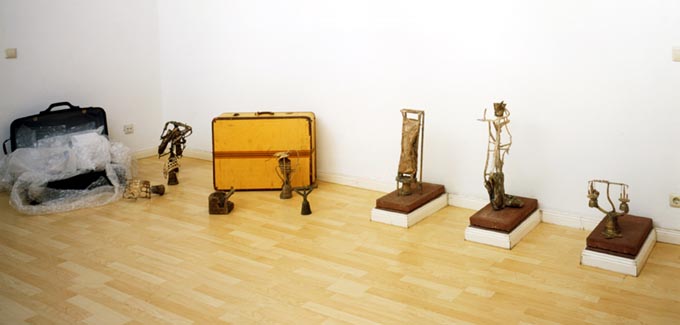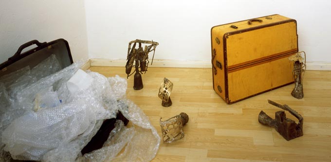 Vernissage Freitag, 17. September 2004 - 20 Uhr "Return to sender - to continue everywhere we go" Objekte und Dokumente eines künstlerischen Dialogs Ausstellung von Roland Schefferski (PL) und Jim McAninch (USA) Dauer der Ausstellung 17.09. - 07.10.2004 Präsentiert in der Galerie ZERO & verlagert in drei Berliner Privatwohnungen. return to sender - to continue everywhere we go Ihre erste gemeinsame Ausstellung „To begin where we are” (2001, Los Angeles) dokumentierte den bis dahin geführten künstlerischen Dialog zwischen Jim McAninch (USA) und Roland Schefferski (D/PL). Die beiden Künstler setzten seitdem ihren per Paketpost, Email und Telefon geführten Austausch von Gedanken, Ideen, Texten und nicht zuletzt materiellen Objekten fort: Über die künstlerische Verarbeitung der verschickten Gegenstände entschied jeweils der Empfänger. In der am 17. September 2004 beginnenden Berliner Ausstellung wird nun der Absender mit dem Ergebnis konfrontiert. Die von ihm verschickten Gegenstände kehren symbolisch zu ihm zurück: „Return to Sender“. So hat Roland Schefferski als ersten Gegenstand aus Berlin ein Paar gebrauchter englischer Ballettschuhe auf die Reise geschickt. Schefferski erwarb diese in einem Kreuzberger Trödelladen. Erst in der Berliner Ausstellung bekommt er das Ergebnis dieser künstlerischen „Trans-Aktion“ zu sehen. Jim McAninch kreierte aus ihnen und anderen Gegenständen skulpturale Arbeiten, überwiegend Güsse in Bronze. Durch das Belassen der Guss-Struktur und entstandener Arbeitsspuren zeigt er mehr als nur fertige Produkte, sondern Arbeiten, die dem prozesshaften Charakter dieses Austausches entsprechen. Der erste von Jim McAninch aus Los Angeles verschickte Gegenstand war eine Spielzeugpuppe der Comic-Figur Buzz Lightyear, ein „galactic self-sacrificing leader“, der einen typischen Helden aus dem „Home of the Brave“ verkörpert. „Neue Welt“ (Science-Fiction-Charakter) und „altes Europa“ (Ballettschuhe) künstlerisch vereint! Die Entwicklung dieses transatlantischen Austauschs von Objekten und Installationen haben die Künstler also in fremde Hände gelegt mit offenem Ergebnis und sie zeigen diese in fremden Räumen: Drei private Berliner Wohnungen werden für die Dauer der Ausstellung zu temporären Galerien und mehr! Anders als bei bereits bekannten Projekten, bei denen private Personen lediglich ihre Räumlichkeiten quasi als Ausstellungsräume zur Verfügung stellten, wurden die von McAninch und Schefferski zum Mitwirken eingeladenen Gastgeber selbst kreativ. So ist es kein Zufall, dass die Figur des Buzz Lightyear in der Kreuzberger Wohnung des kreativen Trödelhändlers Helmuth Falk landete. Schefferski bat ihn um die Bearbeitung der Figur und überließ es ihm, kreativ mit diesem Spielzeug umzugehen. Der Besucher, der sich auf die Suche nach dem fertigen Kunstwerk in dieser unbedingt sehenswerten, in der besten „Merzbau“-Tradition zum Gesamtkunstwerk gewordenen Wohnung begibt, entdeckt viele erfrischende und interessante Werke, die hier zum ersten mal einem Publikum zugänglich sind. Ähnlich frei gehen die beiden anderen Gastgeber mit den von Schefferski gelieferten Gegenständen um. Bei der Charlottenburger Ingenieurin und Südamerika-Liebhaberin Jadwiga Denis Cuesta findet sich eine mexikanische „Loteria Autentica Don Clemente“. Es ist nicht ausgeschlossen, dass man bei ihr auf lateinamerikanische Gäste trifft, deren Anwesenheit das gemeinsame Spiel erleichtern würde. Wie Roland Schefferski die aus Los Angeles abgeschickten Zeitungen LA Times und LA Weekly verarbeitete, lässt sich in der Wohnung des in Prenzlauer Berg lebenden Journalisten Christoph Rasch erfahren. Schefferski hat zwar in diesem Fall selbst die Zeitungen künstlerisch eingesetzt, aber in Zusammenarbeit mit dem Gastgeber fortlaufend seine Kunst in das private Ambiente integriert. |